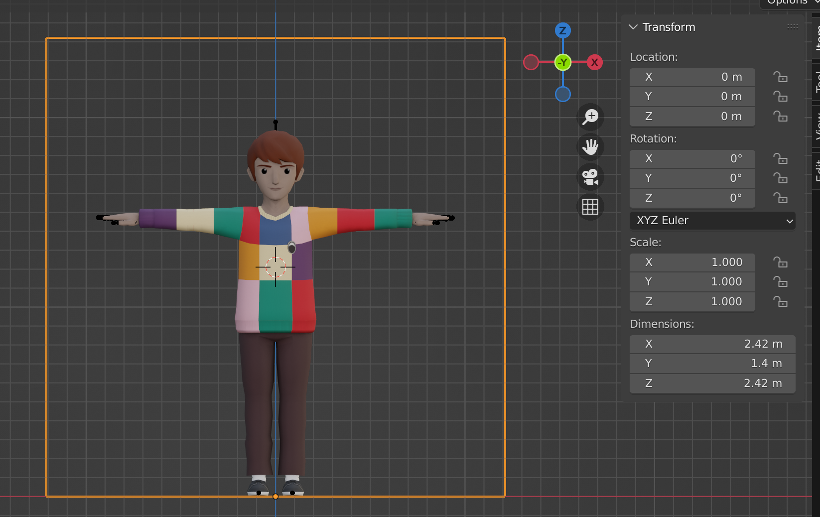 - But it is also good to keep in mind that you can easily alternate from A-Pose to T-Pose just toggling back the “Edit mode” and “On cage” in the armature modifier.