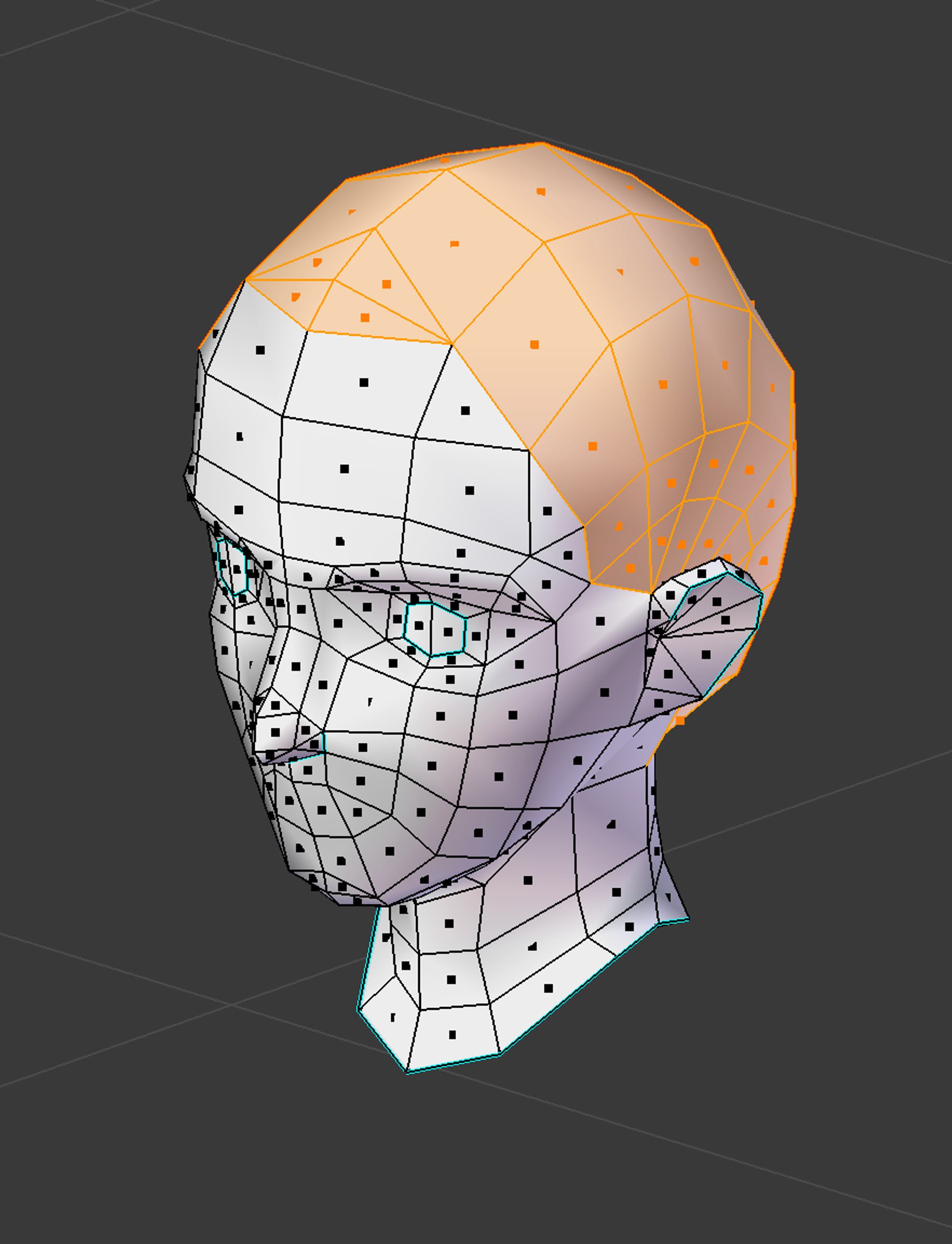 First, try to follow the shape of the head. You can always refer to the head mesh provided in the example files if you need a place to start.