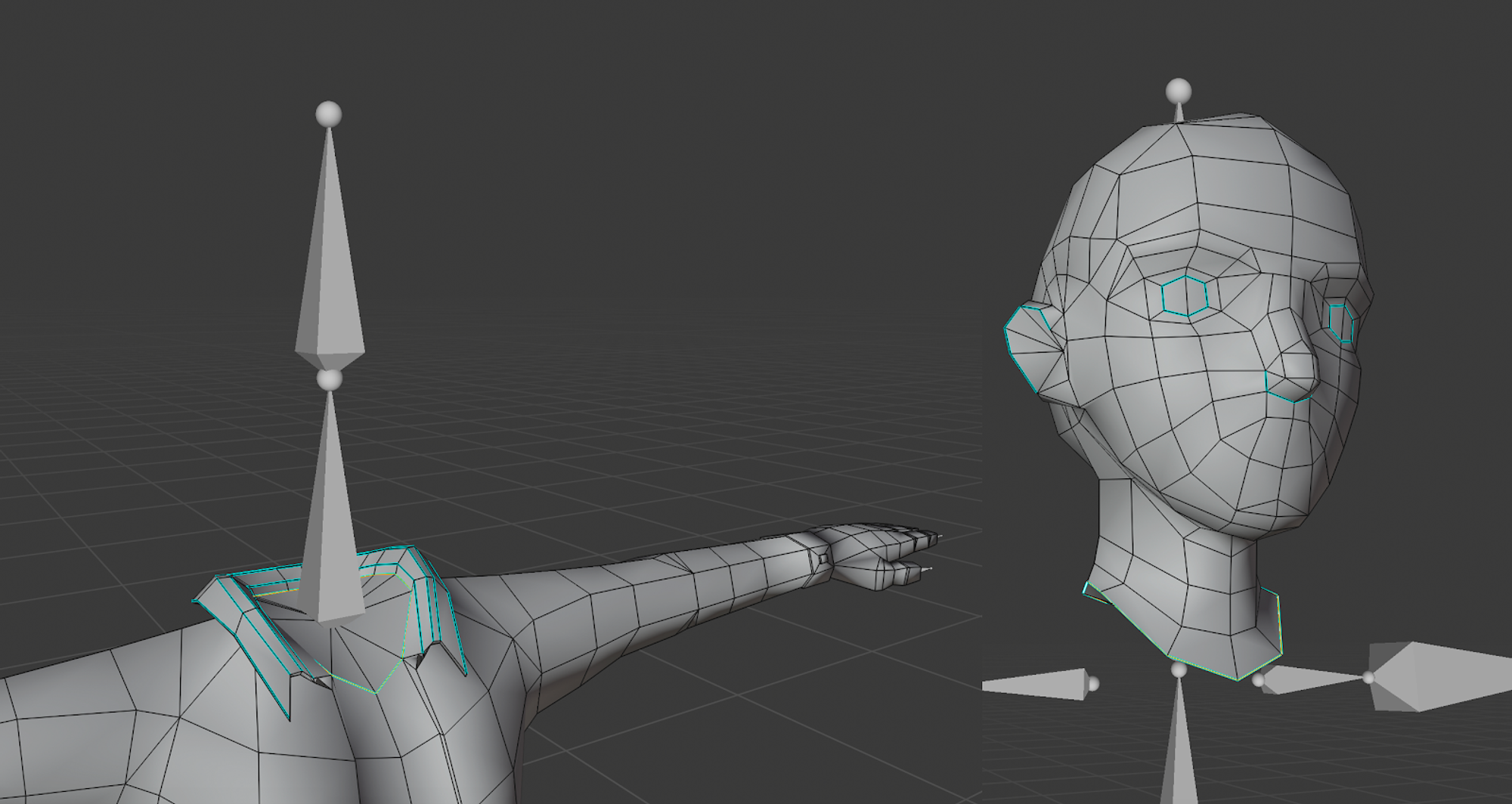Neck Bone: for the main head and upper body’s intersecting vertices.