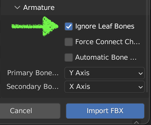 Be sure that the armature imported has no any end or neutral bones, otherwise the wearable is not going to work after exporting to the builder. If you are importing an .fbx that has this issue you can toggle Ignore Leaf Bones when importing the armature.