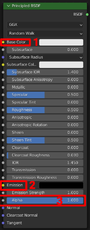 - Emission: This map is for the parts that are glowing in your model. The emission map goes in a separated material specifically for emission.