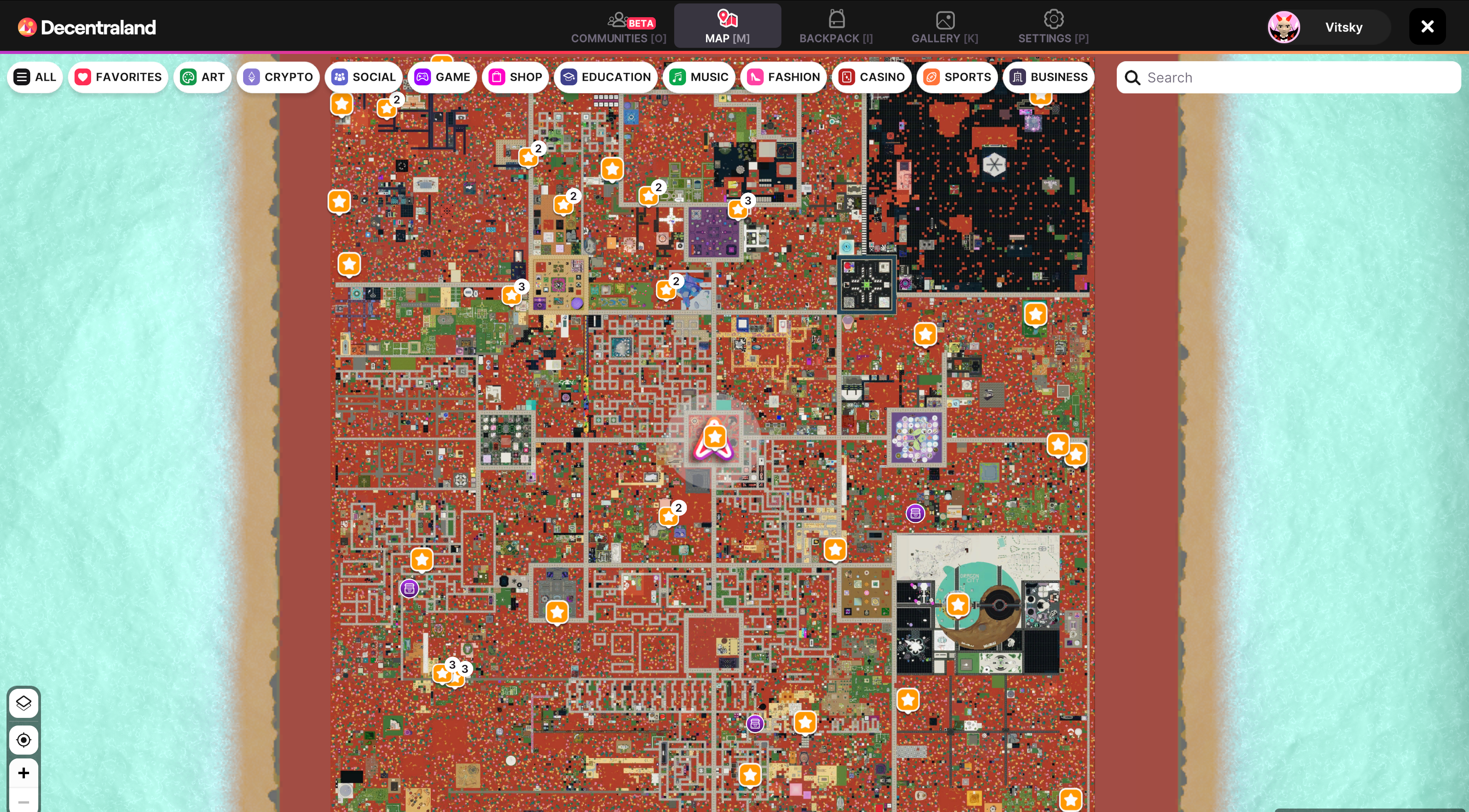 Genesis City is the main landmass of Decentraland, visible on the virtual world’s map. It’s made up of thousands of community-owned LAND parcels, each 16m x 16m in size, and traded in Decentraland’s Marketplace . As the city is laid out in a massive, four-quadrant grid, each parcel is referenced by a set of coordinates—at the very center (0,0), lies Decentraland’s default spawn point: Genesis Plaza.